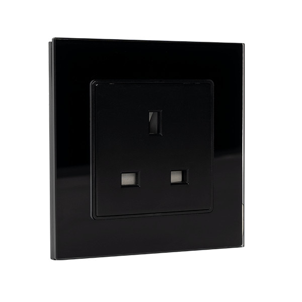 STECKDOSE NACH BRITISCHEM STANDARD 13 A, GLASRAHMEN, SCHWARZ